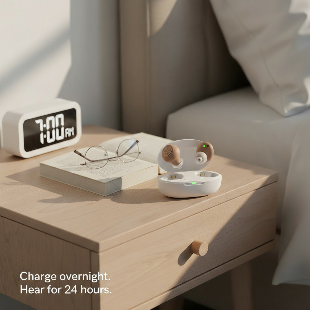No more anxiety about them dying mid-conversation. No more scrambling for tiny batteries at the pharmacy. Just drop them in the case at night like you do with your phone.
